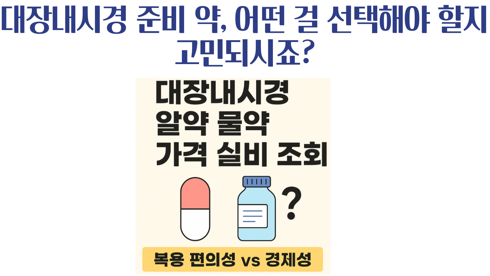이 글에서는 실제 대장내시경을 앞둔 분들이 선택에 도움될 수 있도록 알약 vs 물약 비교, 약품별 가격, 실비 적용 가능 여부를 정리해드릴게요.