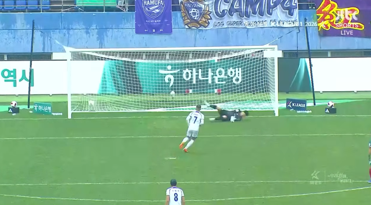 김다솔의 이탈로 기회를 잡은 김정훈은, 첫 경기부터 가장 어려운 상황(추가시간 PK)을 맞았고, 그걸 정면으로 해결했습니다.