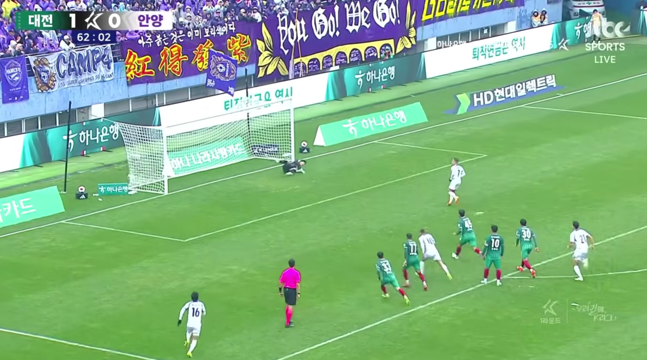 후반 초반 대전이 뚫어낸 방식은 명확했습니다. 서진수의 전진 → 루빅손 침투패스 → 주민규 원터치 크로스 → 서진수 헤더 마무리. 가장 ‘대전다운’ 장면이 선제골로 연결됐습니다.